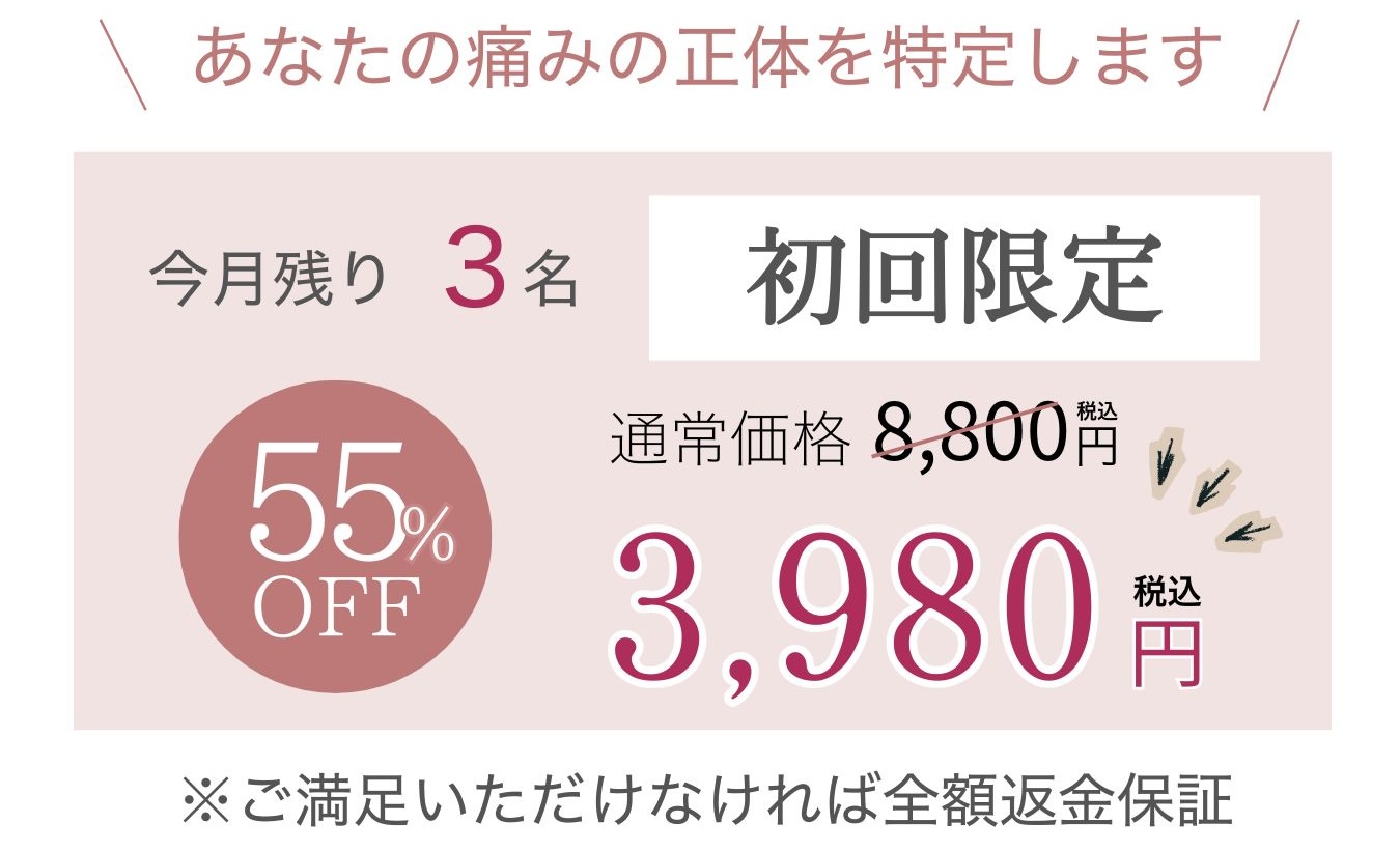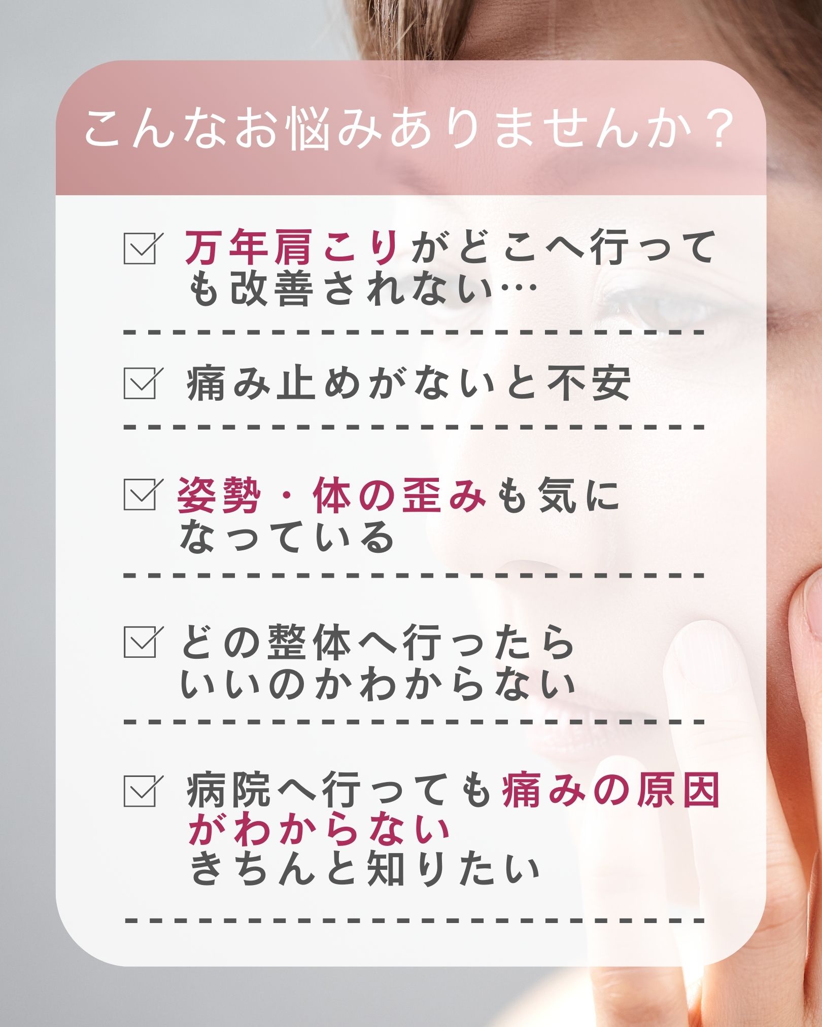 当サロンではあなたの症状だけでなく、身体の構造や機能、メンタル、食生活も全てを的確に、根拠を持って証明します。