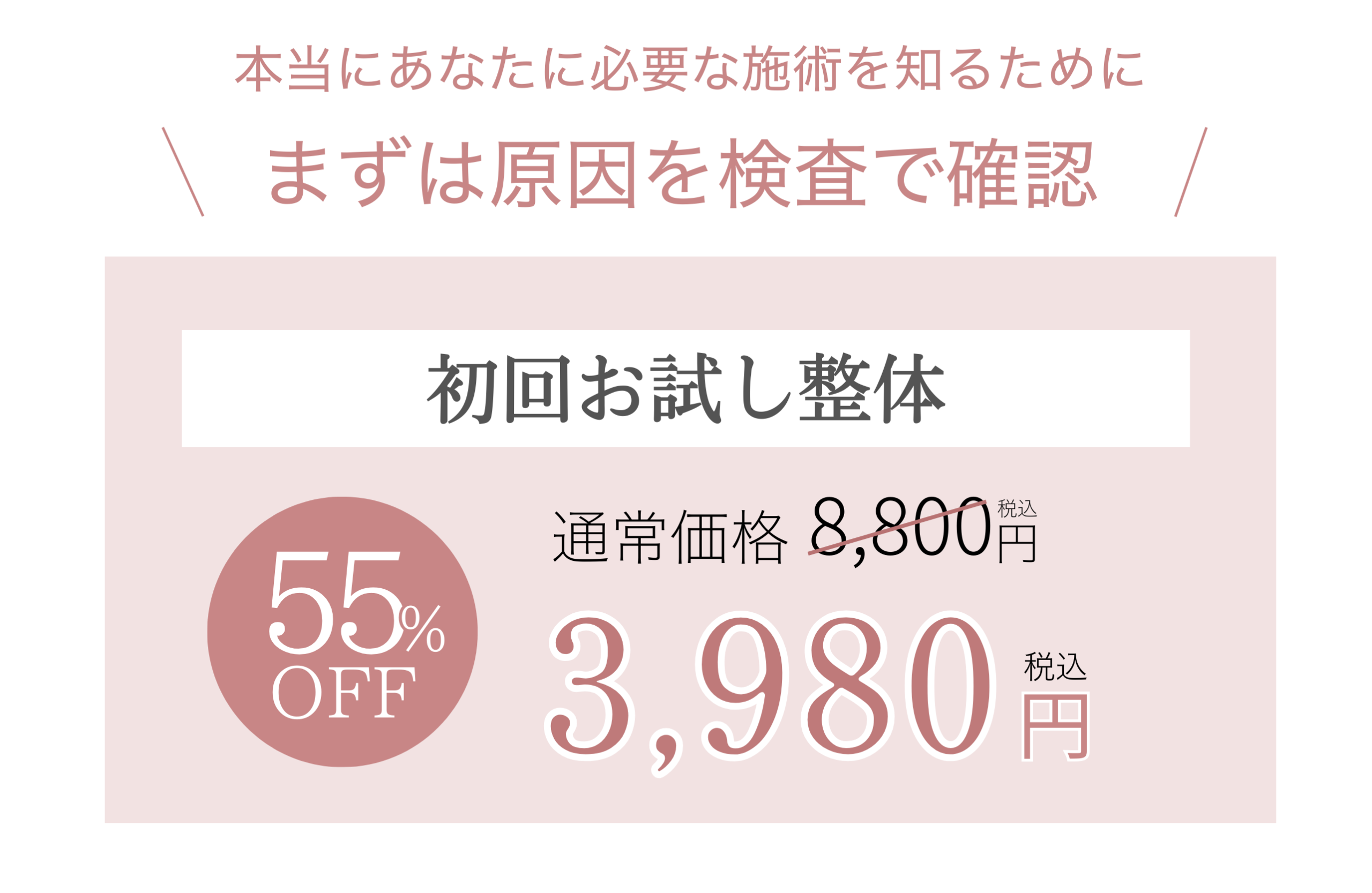 初回のカウンセリングにてあなたの現在の症状、辛さ、悩みだけでなくあなた自身が気付いてもなかったような身体の異変まで探し出します。