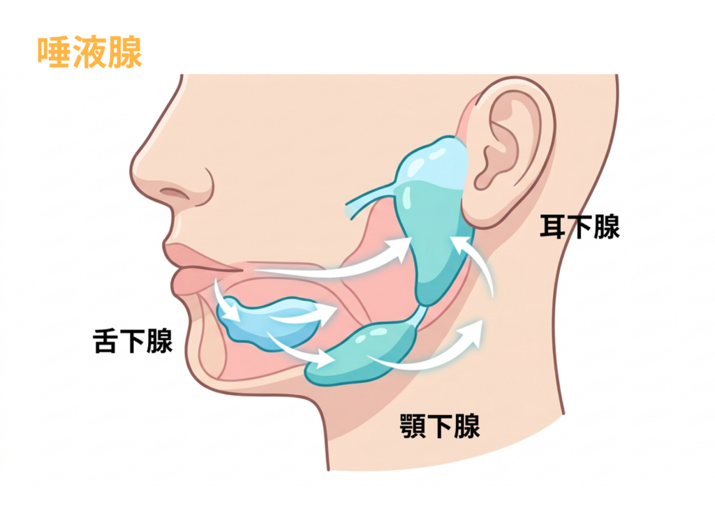 実は、この唾液を作る「唾液腺」の周りには筋肉が集まっています。