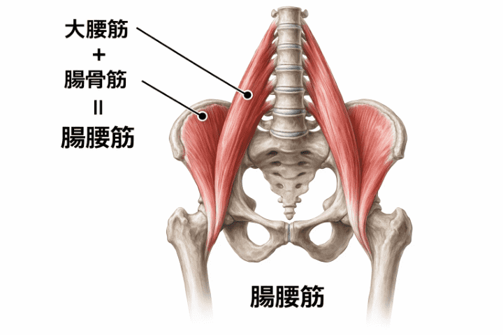上半身と下半身をつなぐ深層筋(インナーマッスル)で、太ももを持ち上げる動作を担います。